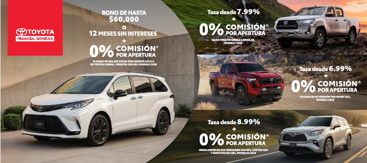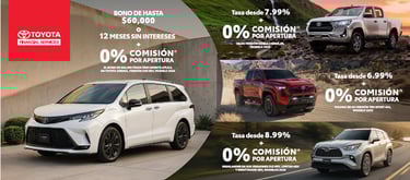 Cotiza tu nuevo Toyota, Agenda tu prueba de manejo, conoce las unidades disponibles, Agenda tu cita de Mantenimiento, Cotiza tu seguro, Cotiza tus Accesorios o Refecciones.